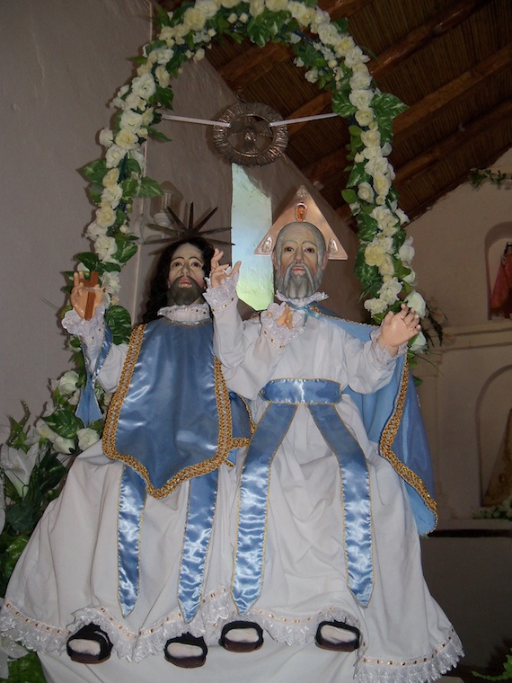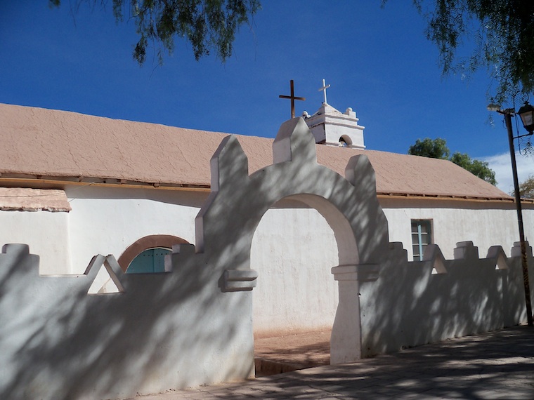 We return to San Pedro via Chile’s oldest bell tower, a mud and cactus construction next to (but not attached to) a small church housing a rather fantastic icon of Jesus and God – I can now reveal that God does have a beard (like his son) and wears black sandals and a blue and white satin pinafore.