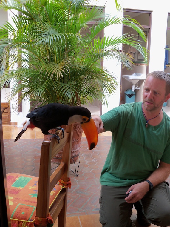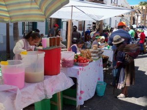 The coffee is excellent here – grown in the hills outside – the vegetables and fruit are plentiful (finally, in South America, we can eat vegetables!), the climate is great even in winter. We’ll stay put a little while here and improve our Spanish – and try to get legal with an entry stamp in our passports.