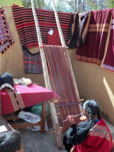 The men are, of course, less excitingly dressed, but there is still considerable effort to be seen. Hats on the men are often sequinned or adorned with ribbons and flowers, and they wear broad leather belts with plenty of studs imprinted. Their ponchos are not as ornate, mostly following geometric patterns, but they’re still handsomely bright.