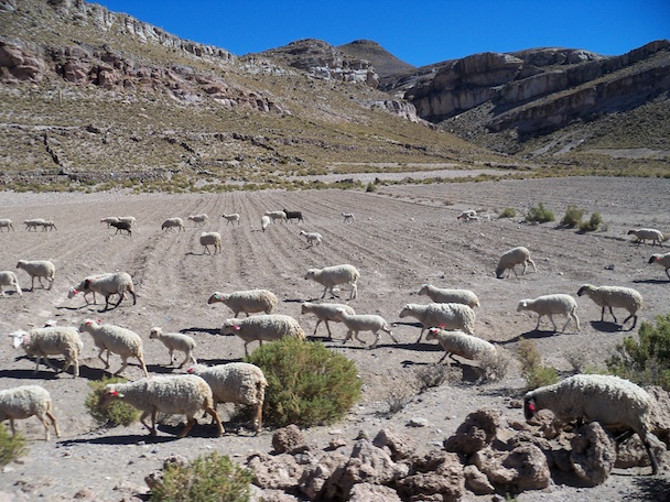 We drive on, sombrely. After another hour, we exit the salar and climb the dirt tracks used by llama herders into the mountains. The scenery is stunning, but it’s a slow, tense journey, hoping that we don’t burst a tyre on the perilous rocky paths.