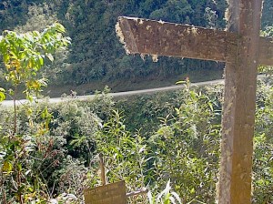 We stop frequently, though. Sometimes to ask about a particularly large cluster of memorial crosses (bus crashes) or to snack or take a photo of the spectacular scenery. It has to be one of the most beautiful roads I’ve ever been on, even if it reminds me of another frightening route we made in Kashmir.