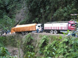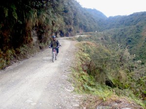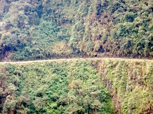 Waterfalls line the route, increasing erosion, landslides and making the muddy road surface still more perilous. Fog, rain and traffic make the road even more dangerous, especially during the November to April rains (when most deaths occur). But it is perhaps the kamikaze drivers, drinking through habit or superstition, taking crazy risks in unroadworthy vehicles and overtaking each other on blind corners that produced such spectacular road death rates. In 2007, a new road was opened that bypasses the Death Road and the majority of traffic and buses take that now. The WMDR is now mainly used by bike companies taking tourists like us.