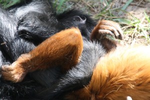 Vicky acquires these in various states. Often, the tips of a monkey’s fingers will have been blown off by a shotgun while it was clinging to its mother; many of he rescue animals have bullets still lodged in their bodies or other missing anatomy from eyes to ears.