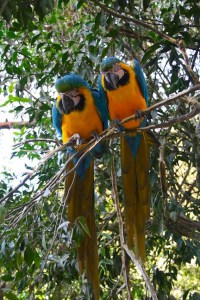 The trees surrounding the lawn are dripping with other monkeys of various sorts, and interspersed with primary coloured macaws, which shout encouragement at the lawn monkeys like spectators at a variety show.