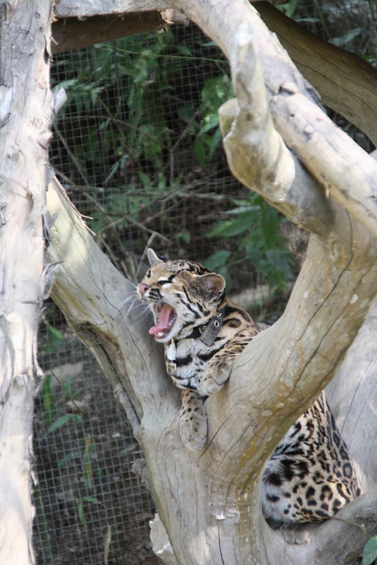 Now, the couple’s La Senda Verde animal refuge has everything from monkeys to snakes to a margay – a small wild cat with jaguar markings and enormous eyes (the largest of any cat) and hips that revolve 180 degrees. Most of the animals are free to roam around once they have been treated for their horrific injuries and neutered. But some, including the margay need to be confined. “The margay was free, but it ate some of the rescue macaws and a baby monkey, so we thought it was best to cage it,” Vicky explains.