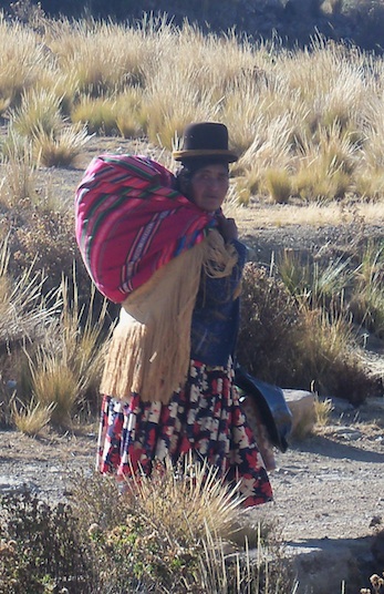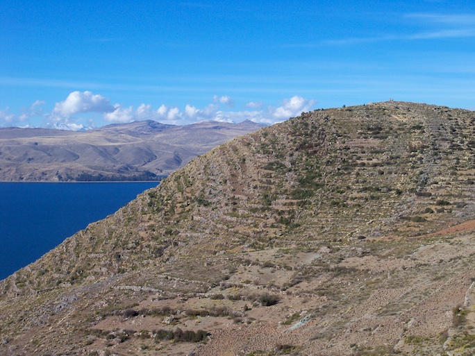 From the Copacabana beachfront, we take a small boat out to the Sun Island. The boat is packed with high-season tourists who selfishly sprawl over the seats, so that two local cholitas have to sit on the floor with their bundles for the 2-hour journey. Everyone is staying on the boat as it travels to the north of the island, except me, Nick and the cholitas who alight at the southern end and consequently have it all to ourselves.