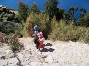 It’s a ridiculously pretty island, striped with Incan ridges for agriculture that cover the entire rocky surface so that it looks like an armadillo. A flight of stone, Incan steps leads steeply up from the beach, lined on both sides by three seemingly miraculous streams of gurgling water from a natural spring. The three streams apparently represent the Incan motto: ‘ama sua, ama llulla, ama kella’ (don’t steal, don’t lie and don’t be lazy), and the spring is as essential today for the island’s 2500 residents, who carry its water on llama or donkey back to their homes and businesses.