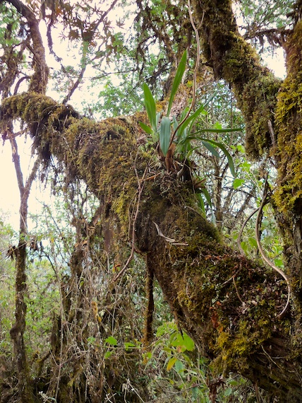 From the pass, we descend through high alpine desert to the tree-line and then, in spectacular fashion, into one of the world’s last remaining cloud forests, all in a matter of hours. Here, there is little distinction between the ground and air: life hangs off other life, trees trailing orchids and ferns, fungi and mosses living off the moisture in the air. Hummingbirds flit from flower to flower – there are more than 100 different species in Peru alone – and lizards scurry noisily away from their invisible sunbathing spots.