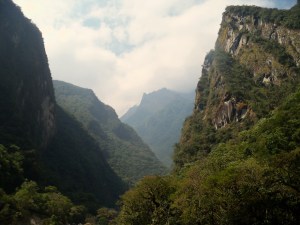 In the morning, we stump up for the bus fare (we no longer do ‘unnecessary’ walking) up the hill to our prize: Machu Picchu. Built on a saddle between two mountains, with a river running almost completely around it, this is the most beautifully situated human habitation I’ve seen. The morning mist rises from the Urumbamba river through the forested mountain sides, cloaking the surrounding peaks and valleys in ethereal mystery. The Incas liked to live close to their gods of sky and mountain – here they achieved their dream.