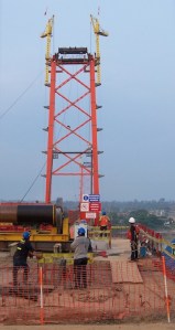 Boatmen ferry passengers across the river, but a new bridge is being built to link Brazil and Peru