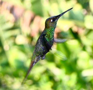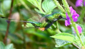 Researchers have constructed vast nets here to entrap bats for study, but which also hinder our progress, so we return from the forest back to the road and continue our descent. Acjanaco, at 3500 metres above sea level, is continually in cloud, damp, cool, yet full of vibrant pink and red fuchsias that attract hummingbirds.