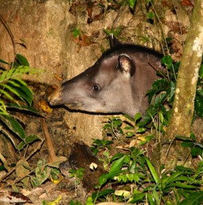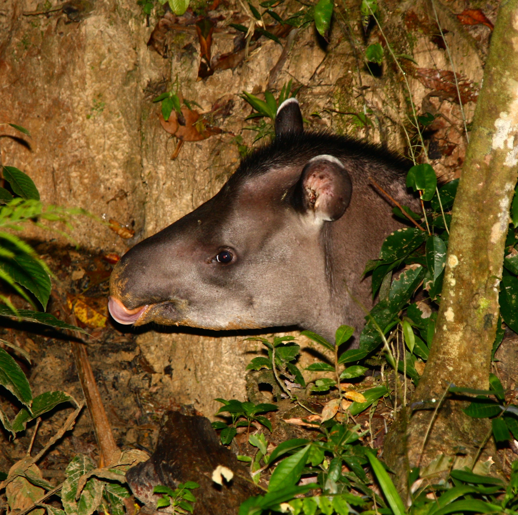 Eventually, there’s a rustle in the forest and in the thin torchlight we see not one, but two tapirs – a mother and baby. They chomp away at the clay for perhaps 20 minutes, twitching their noses and huffeting around like hippos. It’s magical, and when they eventually leave, we stay another couple of hours hoping for a revisit.