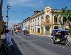 Manaus: Iquitos in northeastern Peru is the largest human habitation that cannot be reached by road. We fly there from Lima, leaving a cold grey foggy city and arriving into a wall of thick hot humidity. The two cities are so incredibly different, it seems impossible that Iquitos and Lima are in the same country. Everything from the climate to the food is of another world. Iquitos feels a lot more like Asia: the people look Asian, there are ‘mototaxis’ (rickshaws) everywhere instead of cars, the buses are open-sided, rice is growing and the evening bar music is accompanied by cicadas and frogs loudly interrupting from the encroaching jungle.