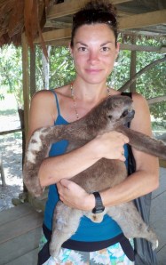 We arrive at the centre and I am immediately given a sloth to hold. It’s a gorgeous creature, but I’m a little bemused. Not as surprised as Nick is, to be draped with an anaconda. Why are these animals in here, I ask. Will they be released soon? The guys working there, tell us the animals are being looked after, but the truth is obvious. The animals are in tiny, dirty concrete cages and clearly only being kept there for tourist money. A baby woolly monkey is in one cage, turning round and round in circles. We leave.