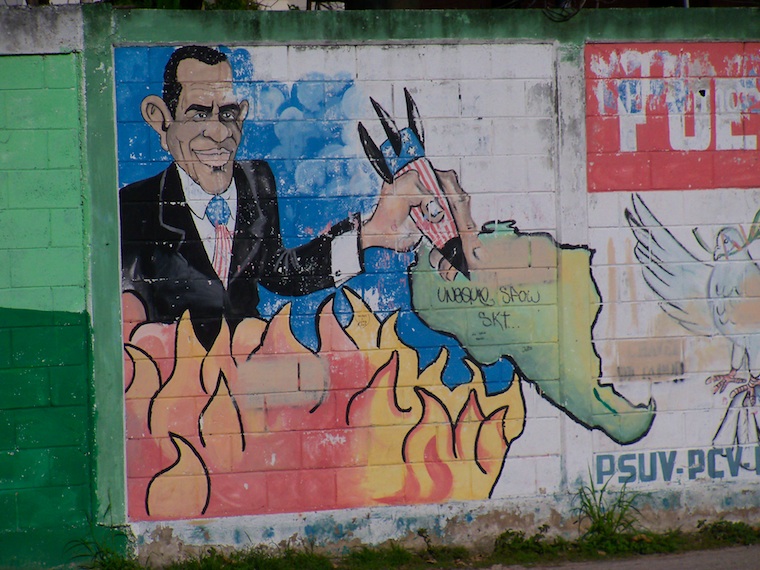 Bolivar really is everywhere, from street signs to statues, mural paintings to banknotes. The great South American liberator, who on his deathbed prophetically proclaimed: ” America is ungovernable. The man who serves a revolution ploughs the sea. This nation will fall inevitably into the hands of the unruly mob and then will pass into the hands of almost indistinguishable petty tyrants”, is the inspiration behind Chavez’s liberation from US-ideology.