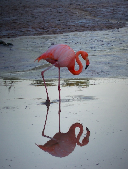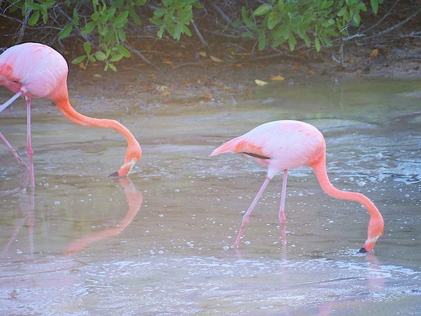Ridiculously pink flamingoes filter-feed in a nearby brine lagoon and countless iguanas make their way to the beach and back every day for their algal snacks.
