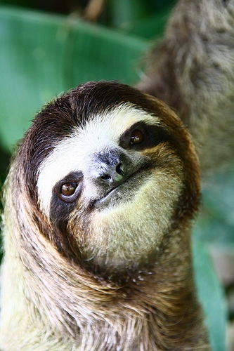 Three-toed sloths are so slow that a green algae and a moth live in its fur