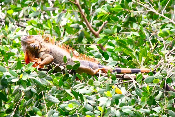 Of course, there are plenty of exceptions. The fantastic iguanas that sunbathe in the leafy canopies are known here as “chicken of the trees” and hunted by small boys with slingshots to adults with airguns. Caimans are hunted for their “aphrodisiacal” tails, snakes are killed on sight, as are any creatures likely to threaten livestock, such as margays or ocelots.