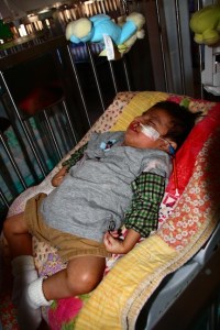 In order to be operated on, the babies must be a minimum weight (10lbs) and attain a minimum haemoglobin count. For all, this means a lengthy hospital stay, while they gain the weight through nose-tube feeding. Tessa pays the parents’ bus fares to visit their kids every 8 days, but with many families having 10-14 kids, time and money are in short supply. Parents seldom visit.