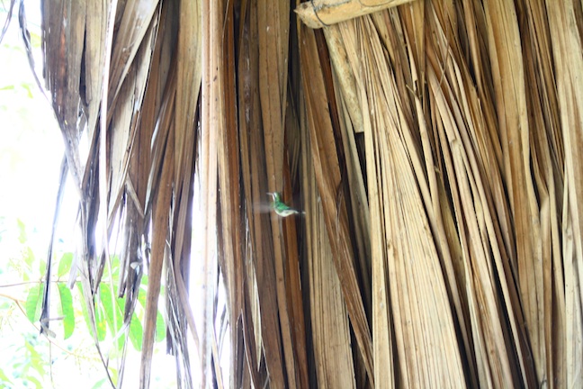 We stay in cabins owned by local Q’ekchi Mayans, whose language is a staccato of syllables that click with consonants. We learn a few words, to practice with the continually laughing, giggling women or the big-eyed little girls, who come around selling “choc-o-lat-e” every day. We watch them making the chocolate: picking big cacao off the trees around our cabin, crushing it in a mortar and adding crystals of sugar. It tastes like sweetened cocoa, which is what it is, I spose.