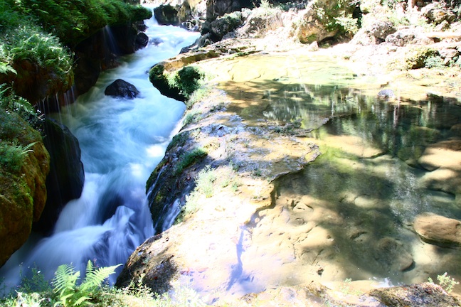 A series of gorgeous turquoise pools have dissolved into the bridge, each connected to the lower one by a cascade of short waterfalls.