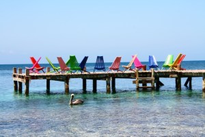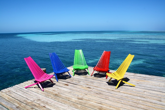 Deckchairs on the jetty at Tobacco Caye