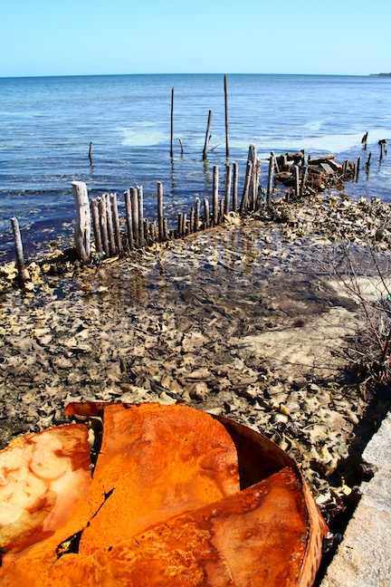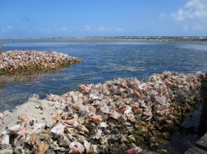 The fishermen catch so many conches there is nowhere to dump all the shells, so they gather on the beaches