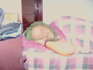 Nick sleeps in a headnet to avoid the mosquitoes
