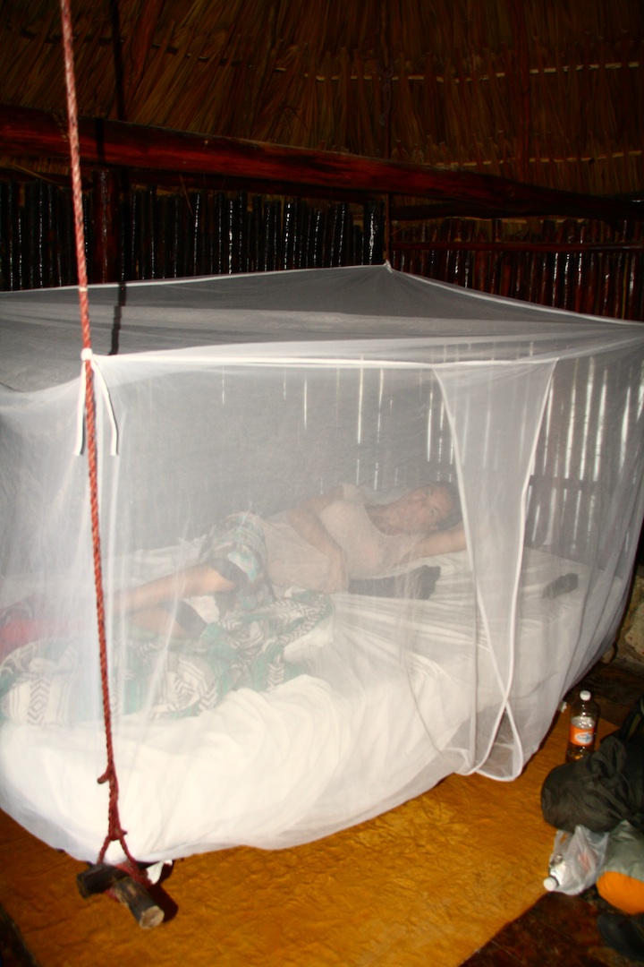We’re finishing on the white-gold sands of Tulum, a stunning wild beach on the Yucatán’s Caribbean coast, where we’ve rented a stick and thatch cabin a few metres from the ocean. At night, the huge supermoon floods through the gaps in our cabin’s stick-sides and the roar and shhh of the waves lull us to sleep in our bed, which swings, suspended by ropes from the roof beam. Our little cluster of cabañas are separated from the big wide beaches by rocks, which protect our own secluded beach from other holidaymakers. We share our space with very few other people even when the weekenders descend.