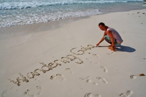 We spend our time reading, staring into the advertiser’s perfect turquoise sea, bracing against sandblasting winds and enjoying the golden sun on our pale skin. Michelle returns home, leaving me a brick of a book – the perfect traveller’s present. And I prepare myself also for the comforts and entertainments of a Western metropolis, its speed and its anger and hostility, its wonderful anonymity but also (and in all senses) its coldness.